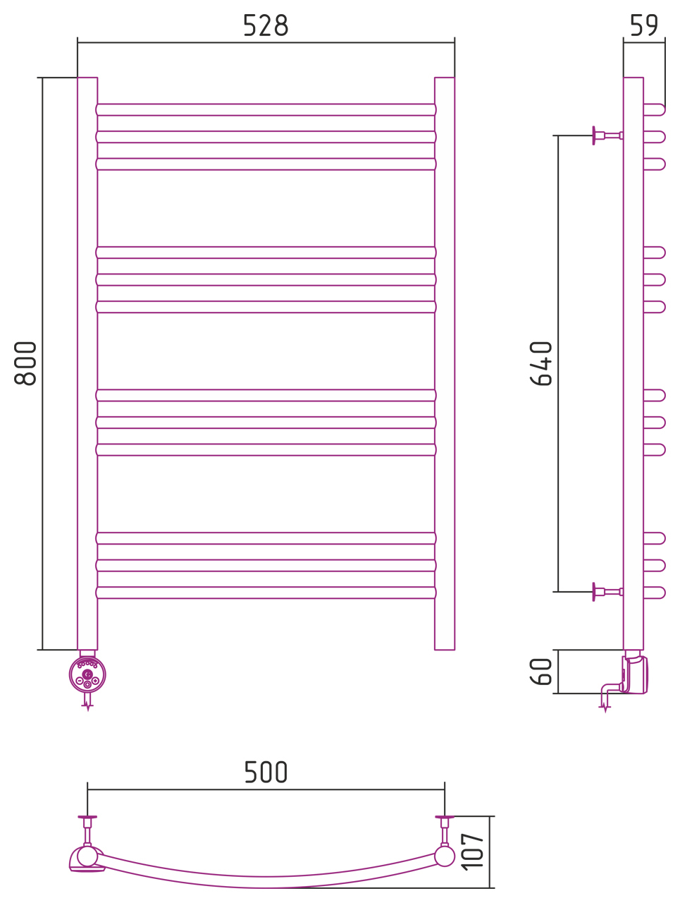 Полотенцесушитель электрический Стилье Формат №10 800x500